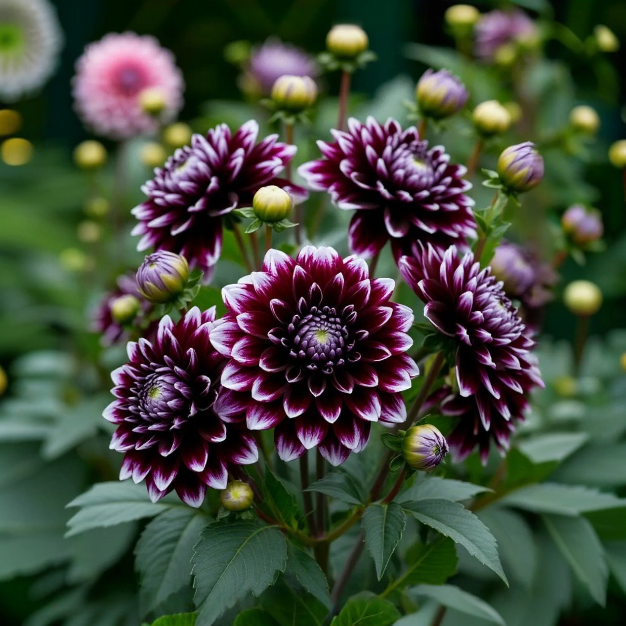 Оформление цветников и клумб: Георгины прекрасно сочетаются с другими однолетними и многолетними растениями.